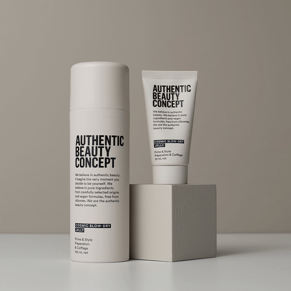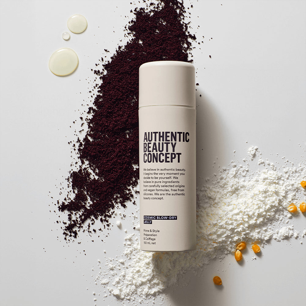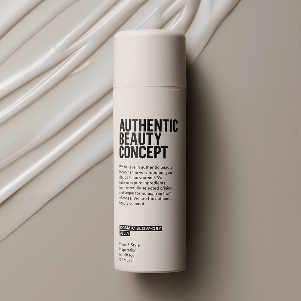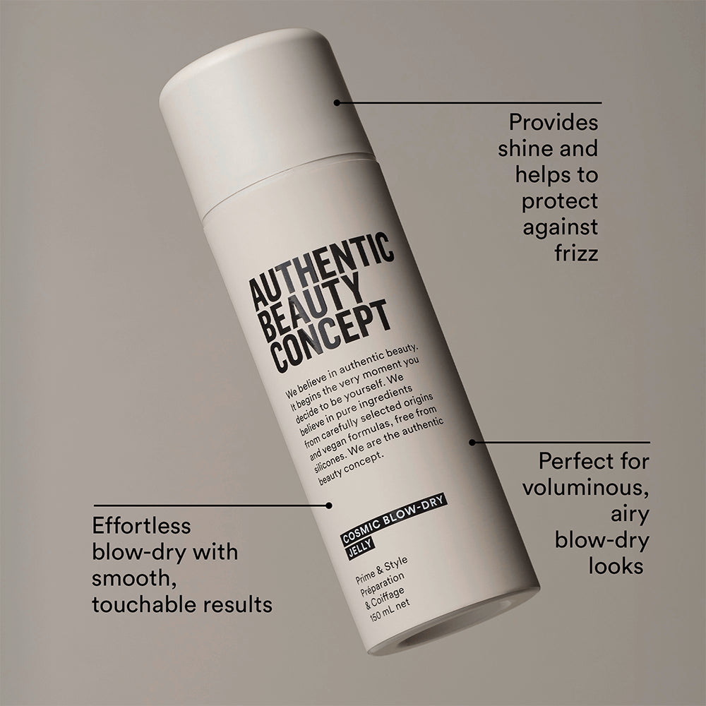 De Authentic Beauty Concept Cosmic Blow-Dry Jelly is een veelzijdige, vegan stylinggel die het haar glad maakt, glans geeft en pluis temt. De lichte formule, verrijkt met açaï-olie, voedt het haar en beschermt het tegen hitte tot 230°C.